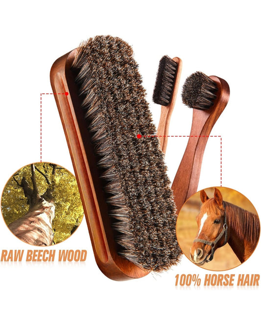 Premium Horse Hair Boot Brush Set & Aplicator Rag